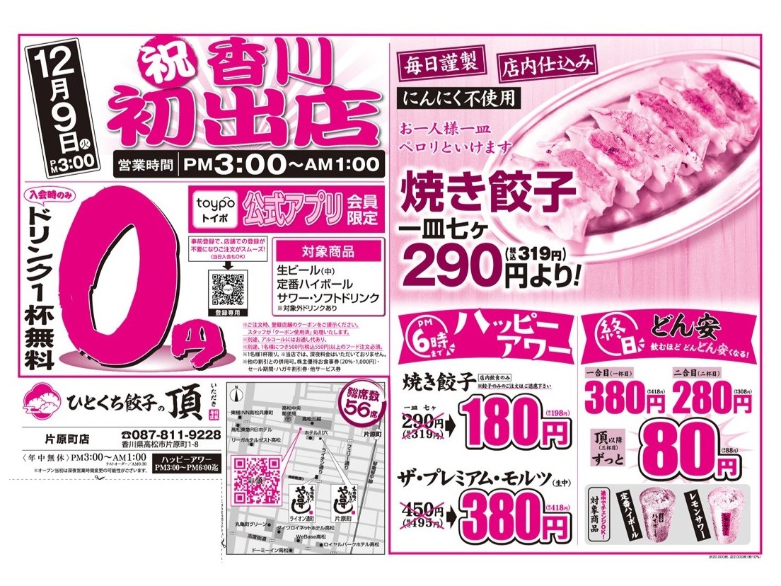 ひとくち餃子の頂 片原町店のお知らせ一覧