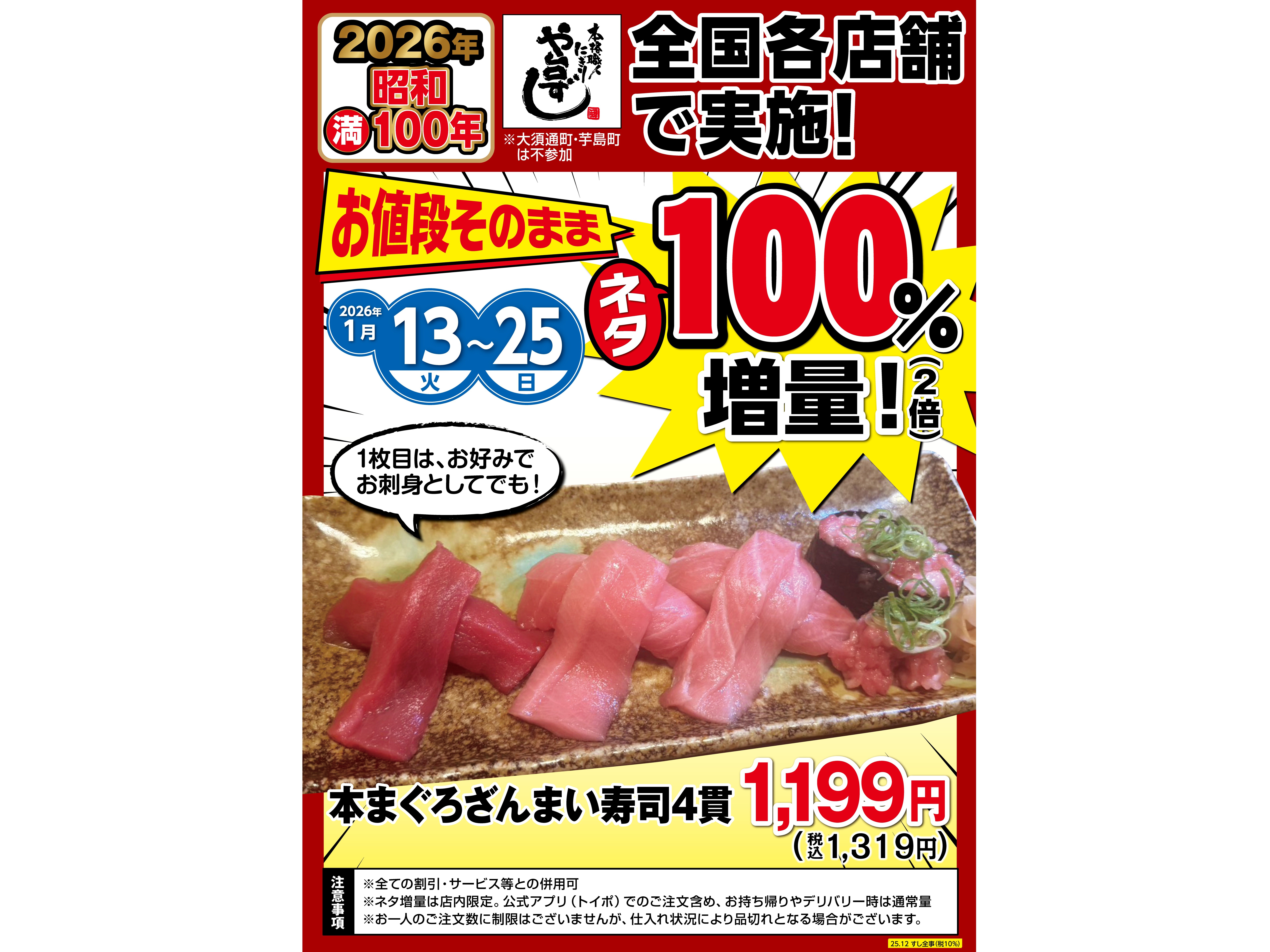 昭和満100年記念🎊本まぐろざんまい寿司4貫ネタ100%増量🍣